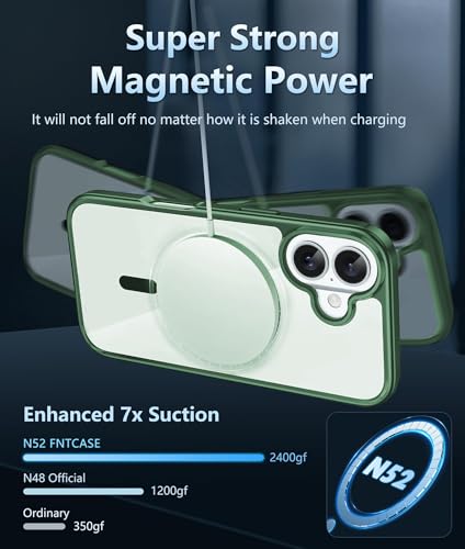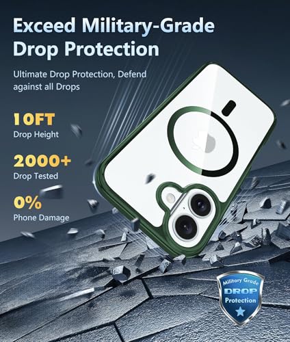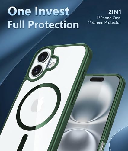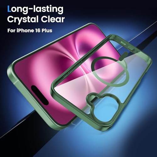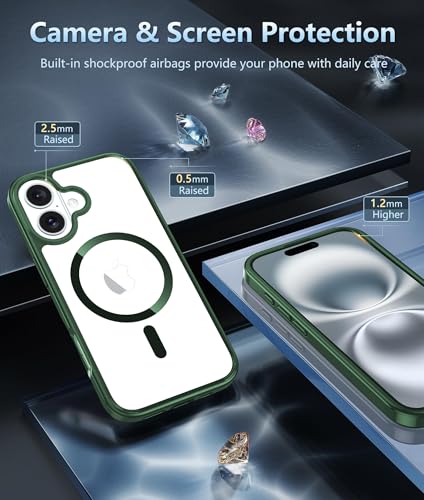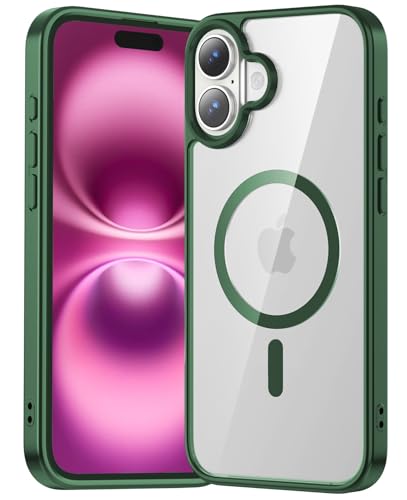 Dl3 Mobilak - جراب حماية مغناطيسي لموبايل آيفون 16 6.1 بوصة من دلع موبايلك، جراب مقاوم للصدمات متوافق مع ماج سيف بإطار من البولي يوريثين المقاوم للحرارة بلون سادة مطفي وظهر شفاف مضاد للخدش (أخضر)