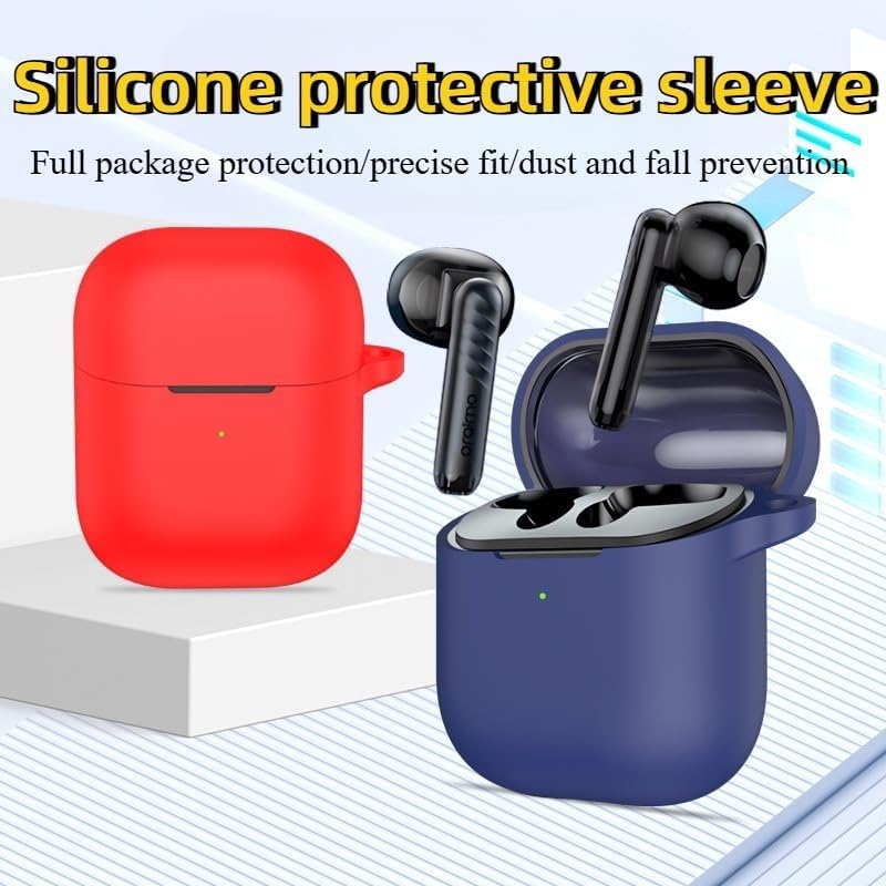 Dl3 Mobilak - حافظة سيليكون لسماعات الأذن اورايمو فري بودز نيو OTW-330S، حافظة واقية من السيليكون المرن مضادة للصدمات مع حلقة تثبيت لسماعات اورايمو فري بودز OTW-330S من دلع موبايلك، لون أحمر