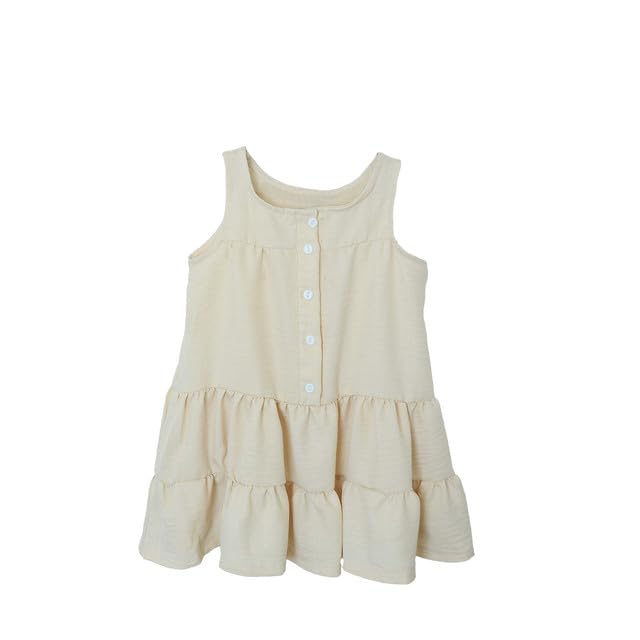 Do Dress On - فستان كتان انيق للبنات من دو دريس، لون بيج، ملابس للمناسبات الصيفية، تفاصيل ازرار