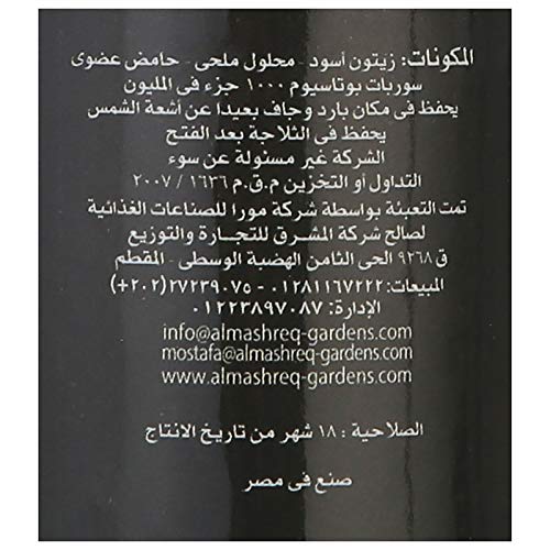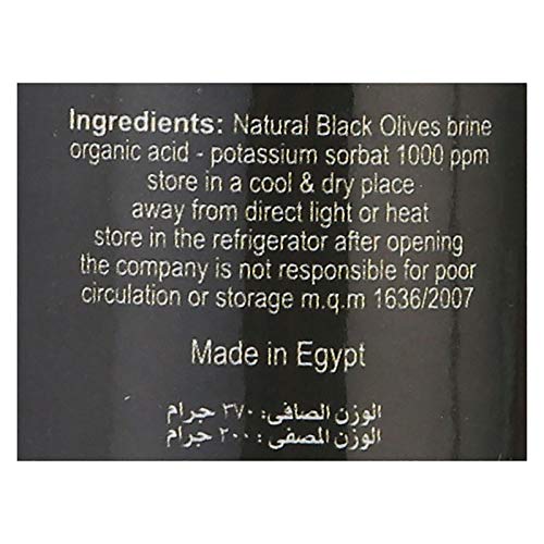 - المكونات: زيتون اسود مخلل - محلول ملحي - حامض عضوي