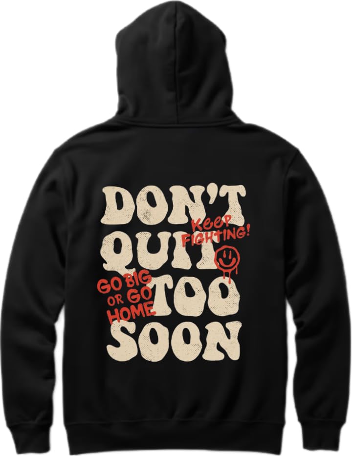 Generic - سترة بقلنسوة سوداء اللون مطبوع عليها DON'T QUIT TOO SOON