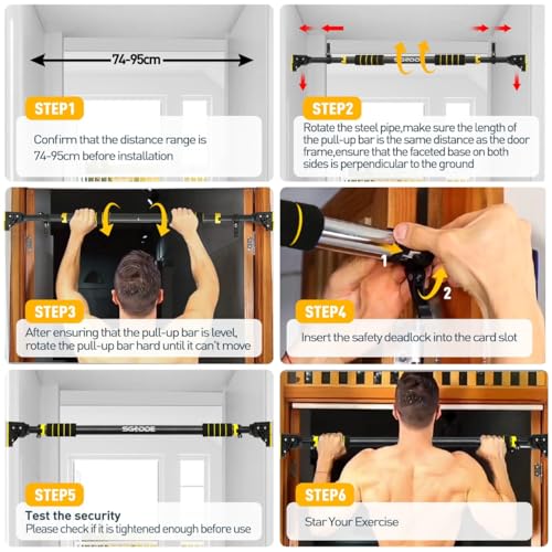 - 【سهل الاستخدام والأمان】قضيب السحب أعلى إطار باب رافعة النقود ولكن لا يوجد ثقب أو براغي للتثبيت على المدخل، لذلك لا يسبب ضررًا للباب. إطار الباب يتراوح عرضه بين 72 إلى 95 سم لتحقيق أفضل أداء في التحميل، بينما يبلغ الحد الأقصى للطول الآمن 110 سم تعديلات مرنة لتثبيتها بأي منافذ قياسية. يمكنك أن تكلف القليل من رياضة كمال الأجسام لزيادة كتلة العضلات وحرق السعرات الحرارية في منزلك.
