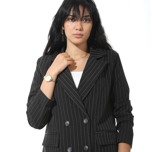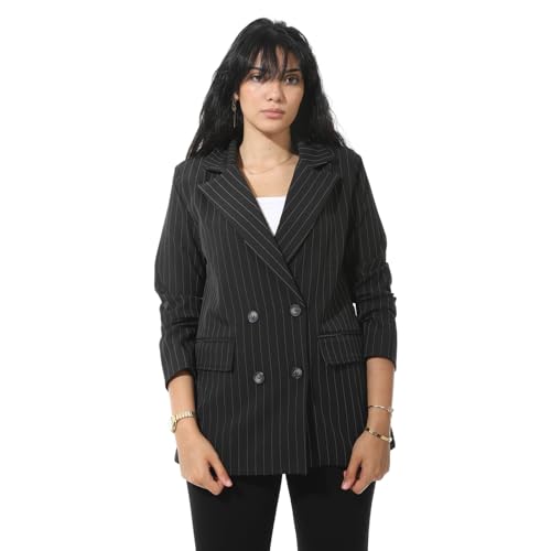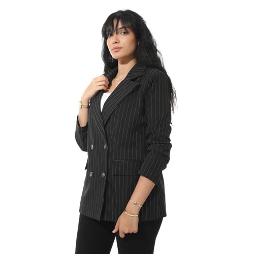 Coctail - جاكيت بليزر مخطط مزدوج الصدر، جاكيت بدلة احترافي بأكمام طويلة - 17283