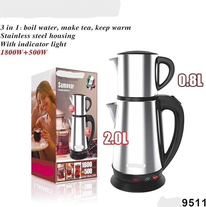 Generic - غلاية كهربائية من جي إم كيه بتصميم زجاجي وستانلس ستيل، مصنوعة من الزجاج والستانلس ستيل، مع إيقاف تلقائي وحماية ضد الغليان الجاف ومؤشر ضوئي، سعة 2.8 لتر