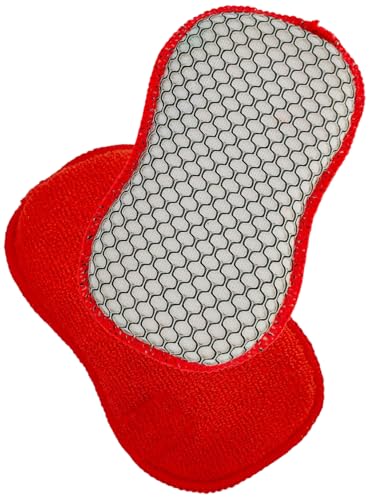 Dr.Wess - إسفنجة تنظيف مزدوجة الجوانب، بلون أحمر