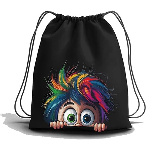 Generic - حقيبة ظهر برباط بتصميم شخصيات قوس قزح، حقيبة يد قماشية سوداء
