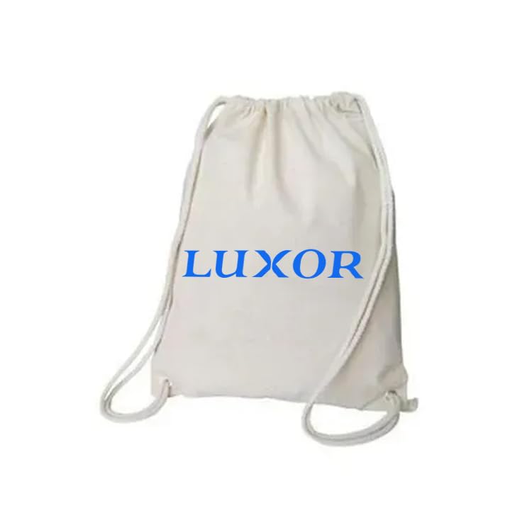 Generic - شنطة ظهر برباط من قماش قطن بلون أبيض مع شعار أزرق