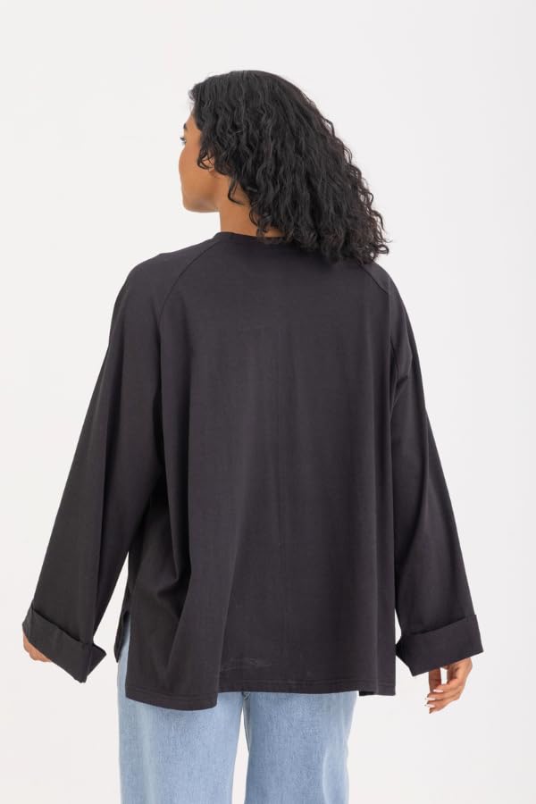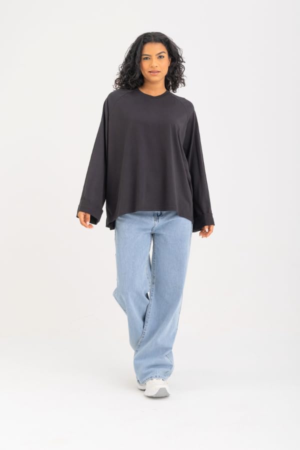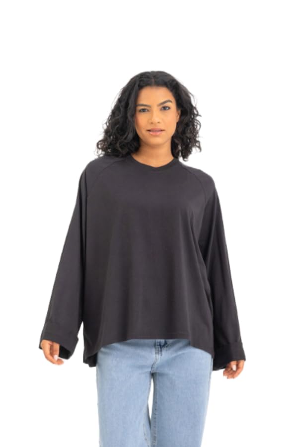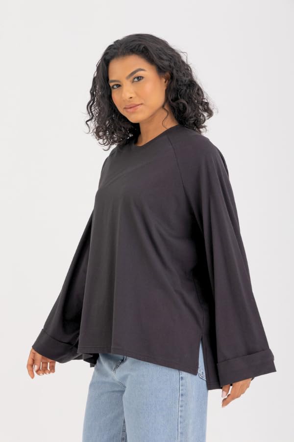 DressCode - بلوزة كبيرة الحجم باكمام طويلة بلون اسود