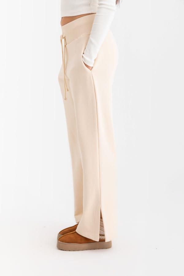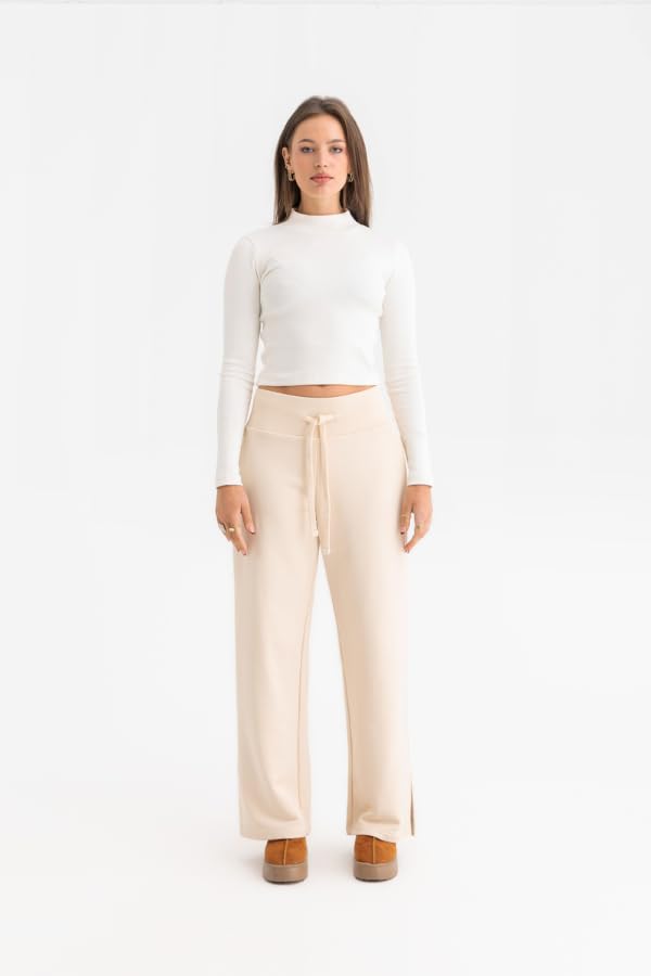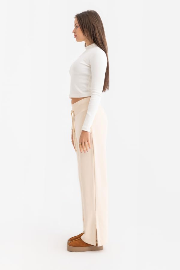DressCode - بنطلون رياضي بفتحة جانبية للنساء من دريس كود، لون بيج (قطعة واحدة)