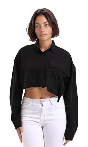Dsisskai - Dsisskai Womens Lightweight Solid Cropped Shirt - Black Modern (pack of 1)