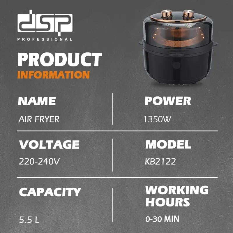 DSP - مقلاة هوائية رقمية تعمل باللمس من دي اس بي، سعة 5.5 لتر، أسود، 1600.0 واط