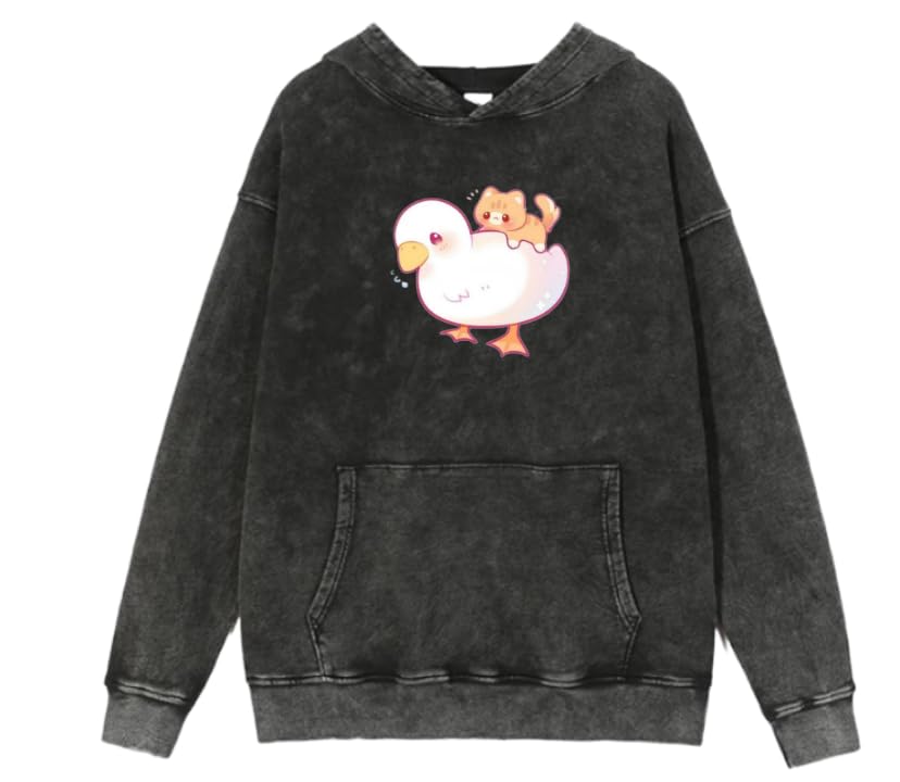 Generic - سويت شيرت بغطاء للرأس بتصميم بطة لطيفة كاواي بلون رمادي حمضي مقاس 24