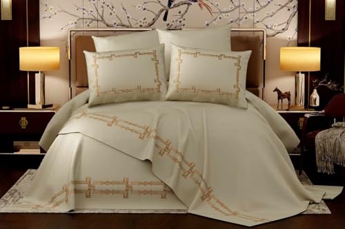 - قطعتان من أغطية الوسائد المطرزة سادة: كل كيس وسادة مصنوع بعناية مع تطريز مطابق بمقاس 50 × 75 سم لإكمال المظهر وتعزيز ديكور غرفة نومك.