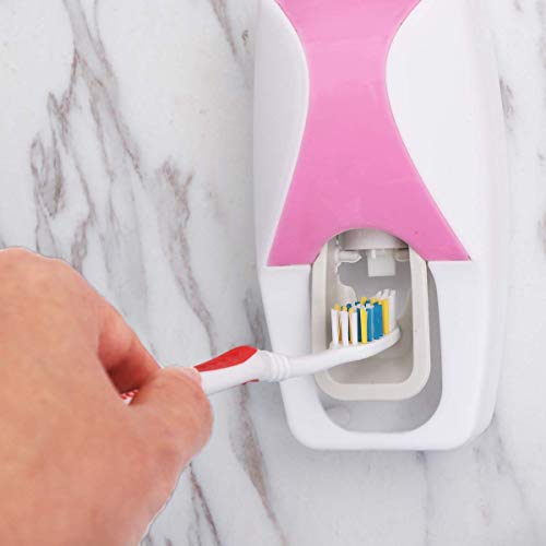 Dxent - جهاز معجون الأسنان الأوتوماتيكي من ديكسنت مع حامل فرشاة أسنان يثبت على الحائط، جهاز معجون أسنان مع 5 مجموعات من حوامل فرش الأسنان، ألوان متنوعة