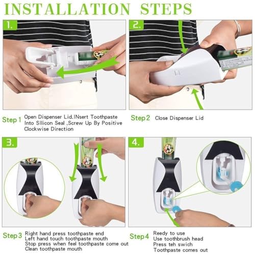 - ضمان الرضا بنسبة 100%: نحن على يقين من أنك ستحب استثمارك في موزع معجون الأسنان الأوتوماتيكي ومجموعة الغطاء. -