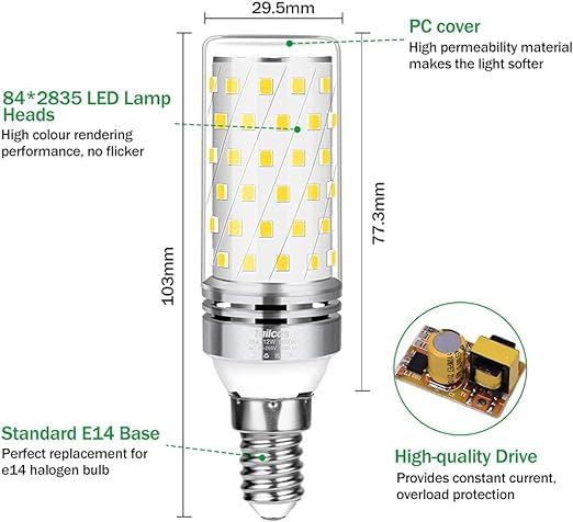 - 🌟【سهلة التركيب】القاعدة القياسية لـ E14 سهلة وسريعة التركيب، مثالية للاستخدام في المطبخ، وغرفة المعيشة، وغرفة النوم، والحمام، وغرفة الطعام، ومصابيح الطاولة، والأضواء المعلقة أو مصابيح السقف..