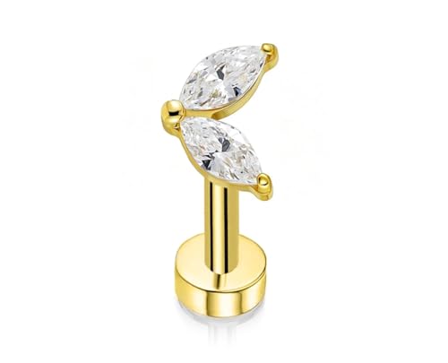 BIJOUX BEAUTIQUE - مجوهرات بيرسينج بتلات مزدوجة مرصعة باحجار كريمة - ابيض، ذهبي