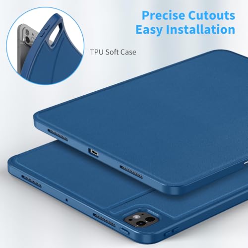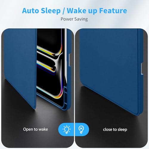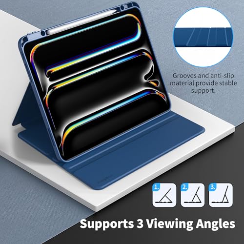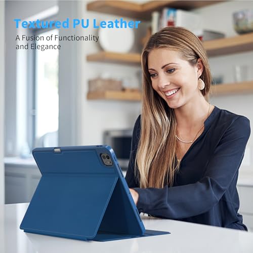 EasyAcc - جراب آيباد برو 13 M4 (2024) من ايزي اك، جراب حماية رفيع للتابلت مزود بحامل قابل للطي يوفر مشاهدة متعددة الزوايا - أزرق (سي بلو)
