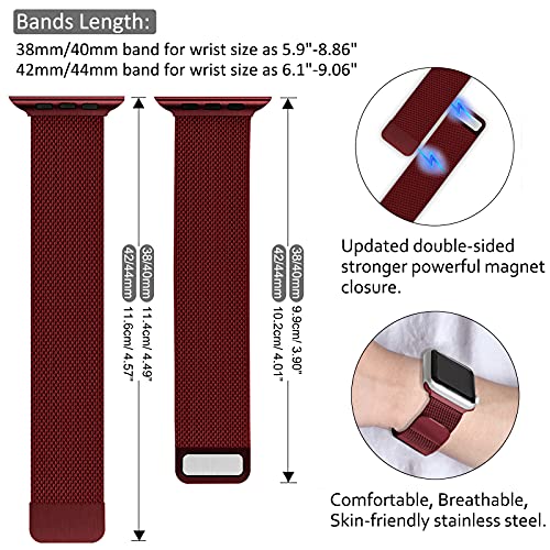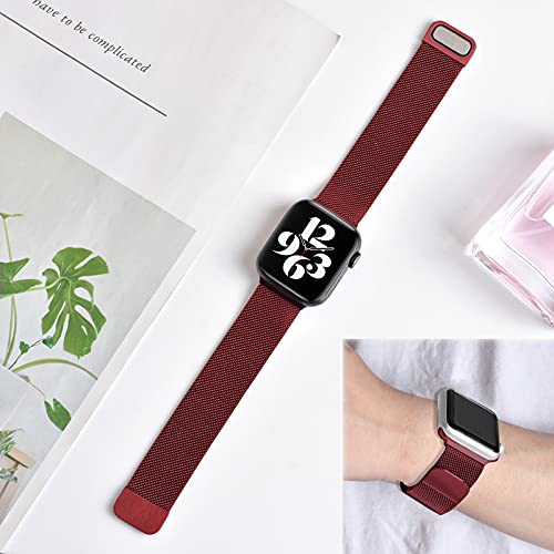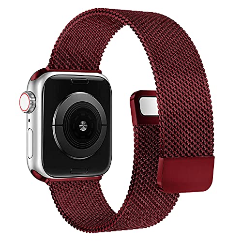 Generic - سوار بديل شبكي معدني قابل للضبط بحلقة ميلانو، إغلاق مغناطيسي من الفولاذ المقاوم للصدأ، متوافق مع ساعات آبل 42 و44 و45 ملم 49 ملم وساعات اي ووتش الترا SE 8 و7 و6 و5 و4 و3 و2 و1، من اي سي باند، أحمر