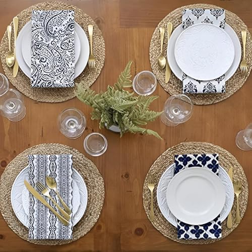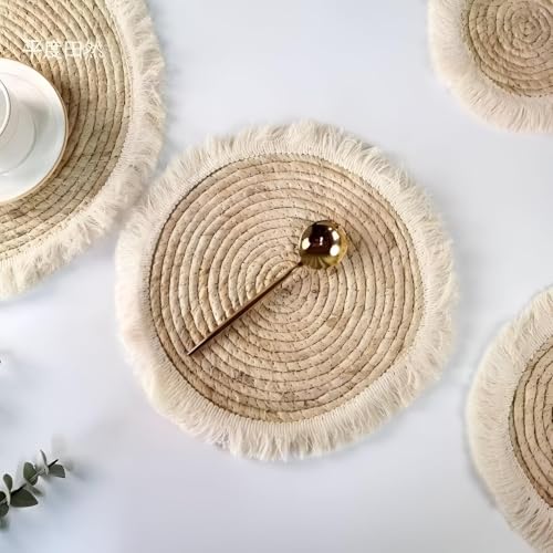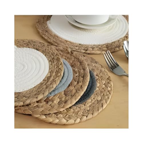 Generic - مفارش اطباق من ايكو جوت - مجموعة حصائر موضوعة يدويا من الجوت الطبيعي 100%، بسطح مخدوش، قواعد اكواب مقاومة للحرارة، وقاعدة غير منزلقة تحافظ على سطح طاولة الطعام بأمان. (موديل 2)