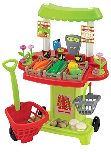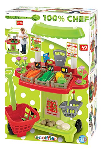 Ecoiffier - ألعاب تخيلية للأطفال مكونة من عربة تسوق سوبر ماركت مع ماكينة تسجيل مدفوعات ومنصة سوق من إيكوفيير