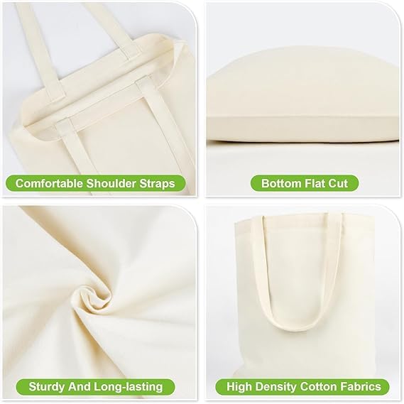 Generic - شنطة كبيرة توت من القطن الاقتصادي، خفيفة الوزن متوسطة الحجم وقابلة لاعادة الاستخدام، مع مقابض وسحاب، مطبوعة للدعاية والترويج والهدايا والنشاط، قطعة واحدة، اوف وايت