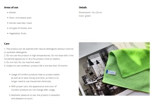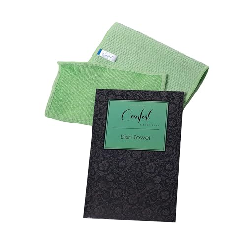 EcoWay - فوطة مطبخ بنقشة سادة مايكروفايبر من ايكوواي، اخضر , مقاس واحد