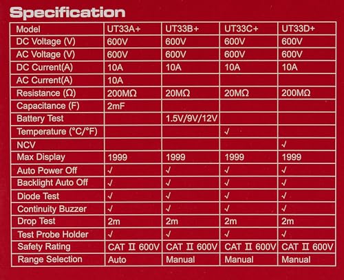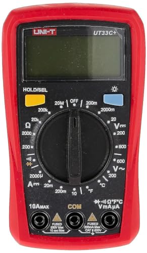 UNI-T - جهاز قياس رقمي متعدد الاستخدامات بحجم الكف من يوني-تي، لقياس الجهد الكهربائي والتيار والمقاومة ودرجة الحرارة، مع شاشة ال سي دي واضاءة خلفية من سلسلة Ut33C بلس من اي سي في في