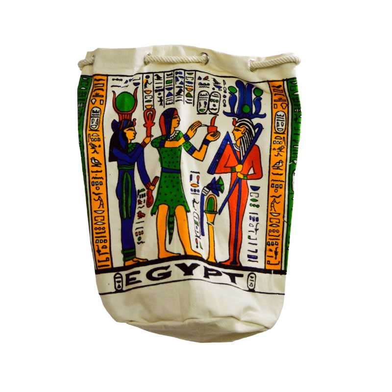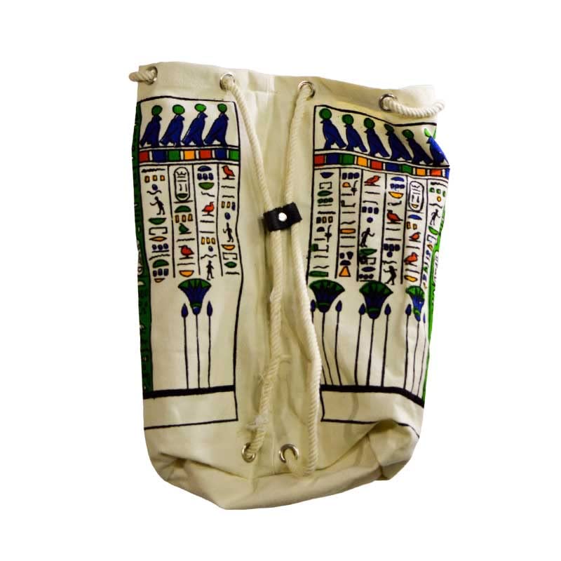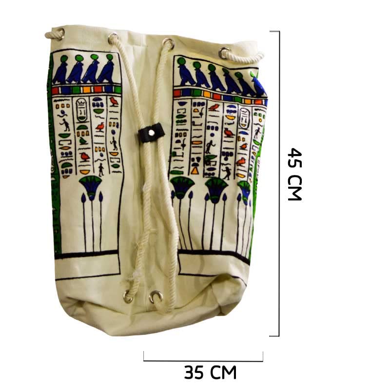 Egypt Antiques - شنطة ظهر بحبل بتصميم هيروغليفي مصنوعة يدويا من القطن المصري بنسبة 100% من ايجيبت انتكس