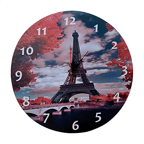 New - ساعة حائط خشب دائرية انالوج بعقارب شكل برج ايفل - 40 سم