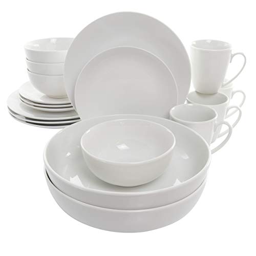 Elama - طقم أطباق عشاء من البورسلين من مجموعة اوين من ايلاما، لون أبيض لامع