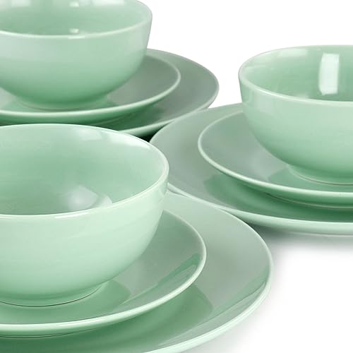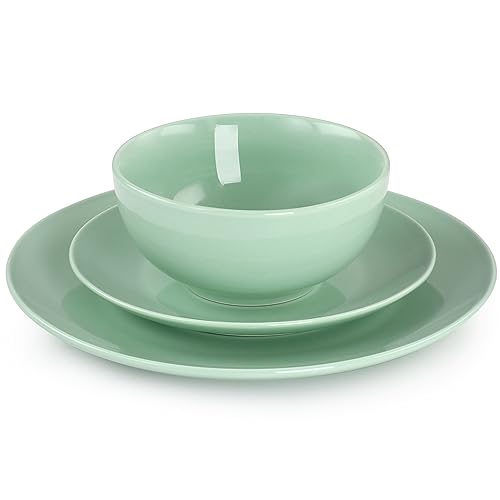 Elama - طقم أدوات مائدة بورسلين من ايلاما لونا مكون من 18 قطعة (لون أخضر فاتح)