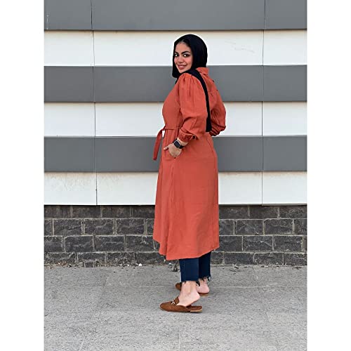 Generic - Elastic Cuffs Deep V Dress - Pumpkin نساء