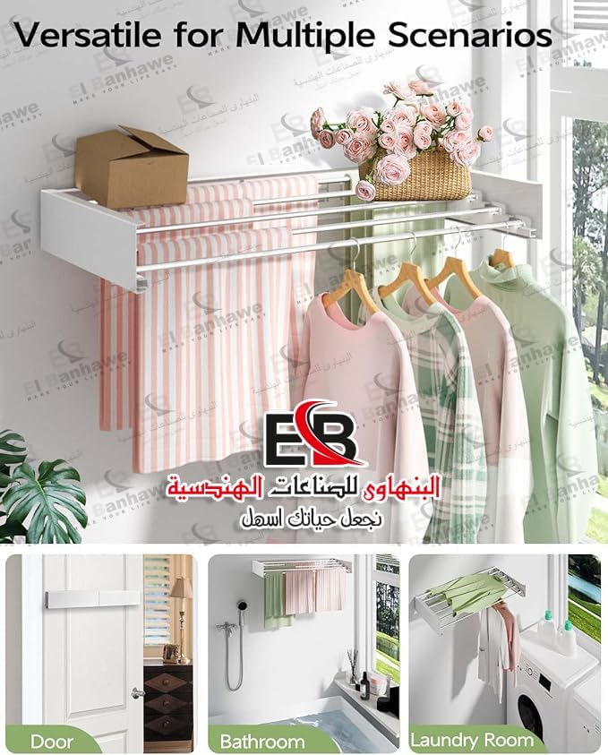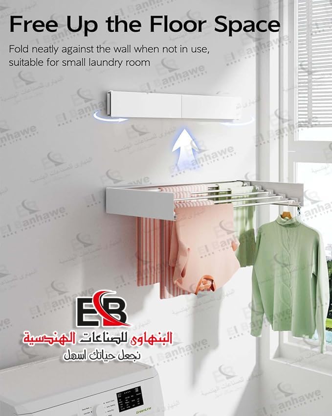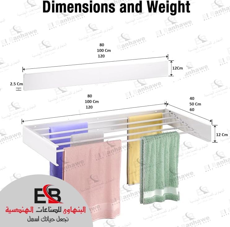 ElBanhawe - منشر غسيل من البنهاوى - أبيض - 1 متر، سبيكة صلب، ستانلس ستيل