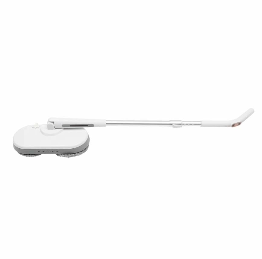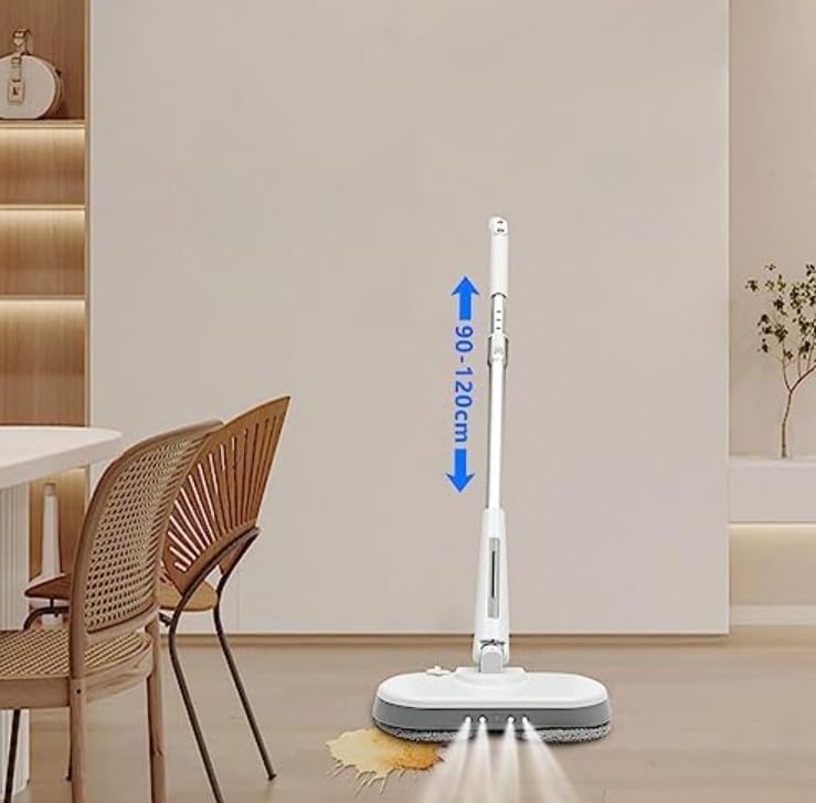 Generic - مساحة موب كهربائية دوارة مع مؤشر طاقة ليد، منظف الأرضيات لاسلكي، مقبض قابل للتمدد، أبيض