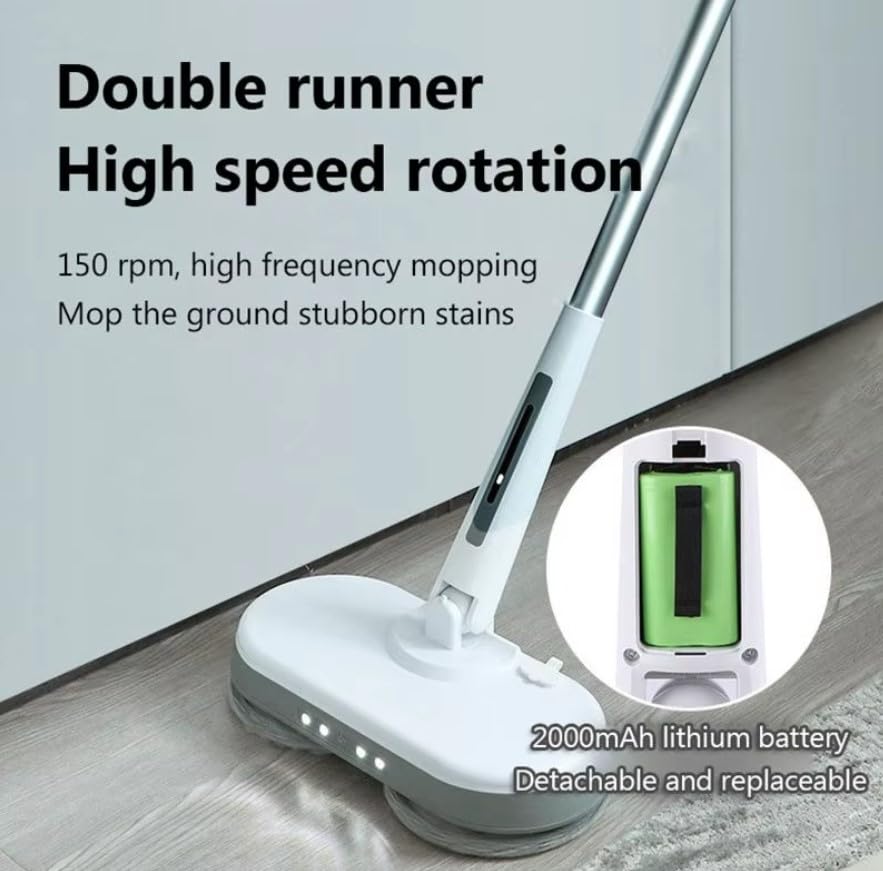 - تصميم بدون أسلاك: ممسحة موب كهربائية دوارة فعالة مع تشغيل لاسلكي لحركة وراحة تنظيف غير مقيدة.
