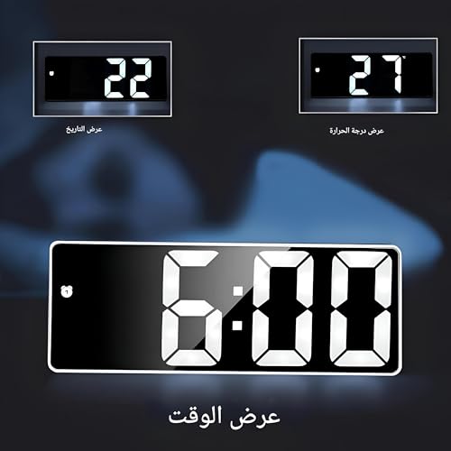 - تُظهر الأرقام الكبيرة والمضيئة بإضاءة ليد الوقت بوضوح عالٍ حتى في الظلام، مما يتيح لك معرفة الوقت بسهولة في أي وقت من اليوم أو الليل.