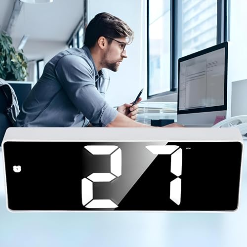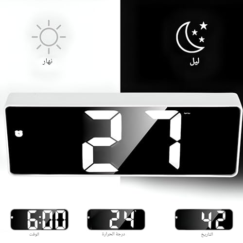 Generic - ساعة طاولة إلكترونية بتصميم أنيق مع سطوع قابل للتعديل ووظيفة غفوة وتحكم صوتي لضبط الوقت بدون مجهود