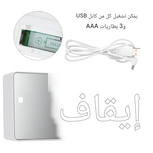 - يمكن تشغيلها إما بواسطة كابل USB للتشغيل المستمر أو 3 بطاريات ايه ايه ايه لسهولة الحمل، مما يوفر خيارات طاقة مرنة لتناسب حالات الاستخدام المختلفة ومنع مخاوف انقطاع الطاقة.