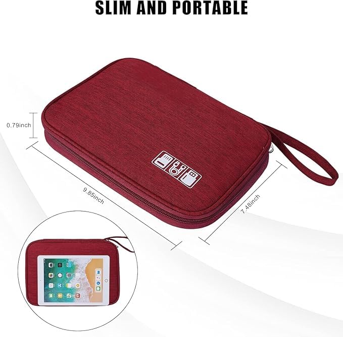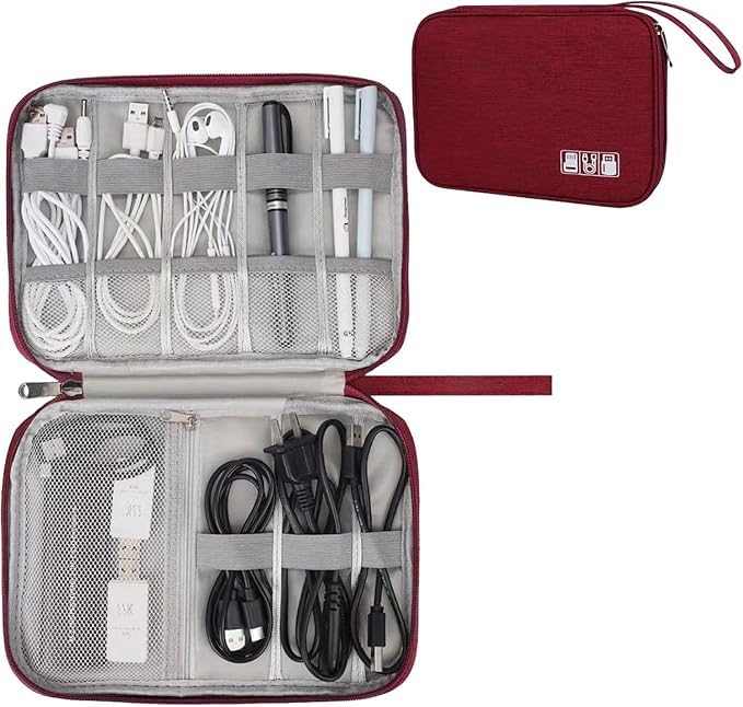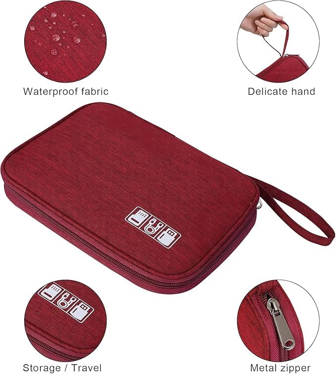 Happy Home - شنطة تنظيم اكسسوارات الإلكترونيات، شنطة تنظيم كابلات سفر، حقيبة أدوات سفر عالمية لحمل كابل USB وبطاقة SD وقرص صلب وشاحن (أحمر)