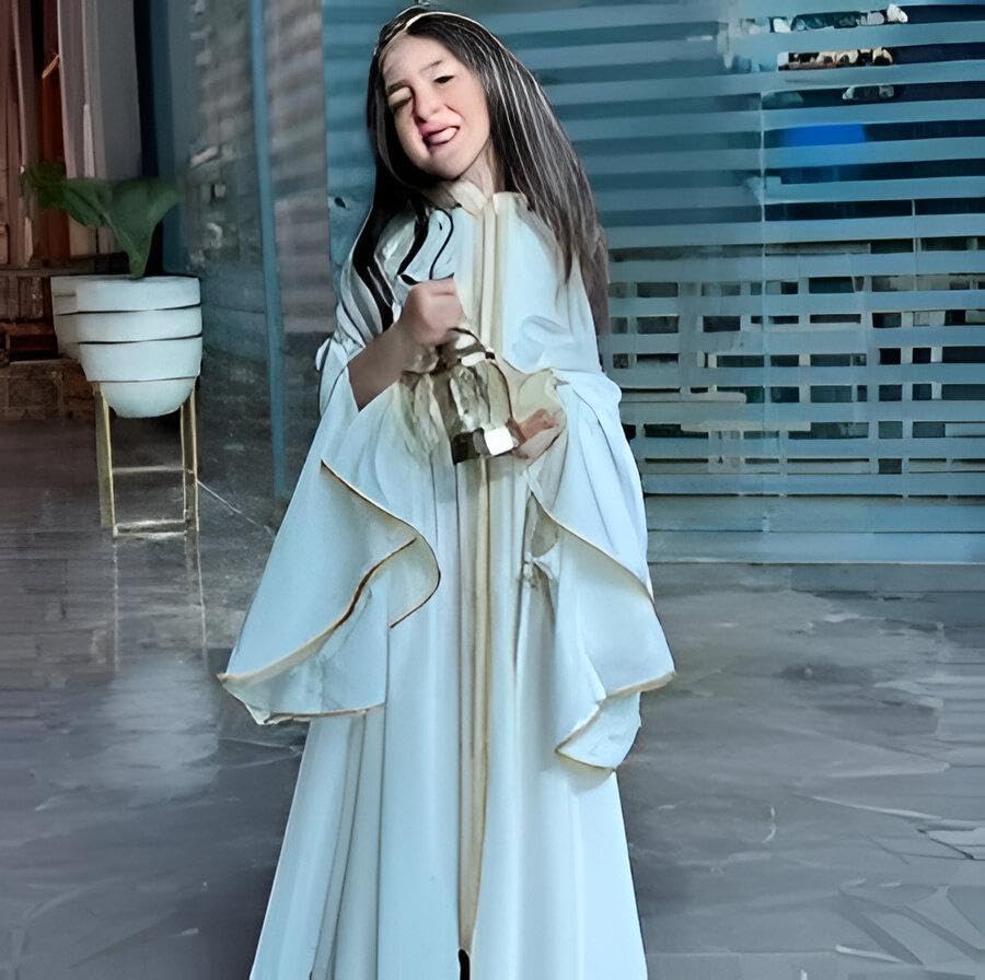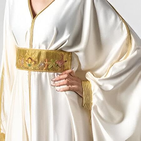 Generic - عباية أنيقة بتصميم إسلامية وحواف ذهبية رقيقة وأكمام واسعة انسيابية ورقبة عالية واسعة للتجمعات الرسمية وحفلات الزفاف والمناسبات الخاصة، أزرق فاتح