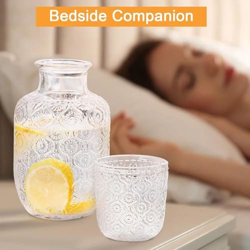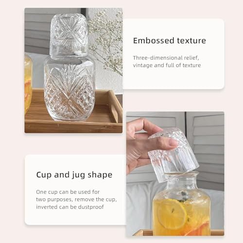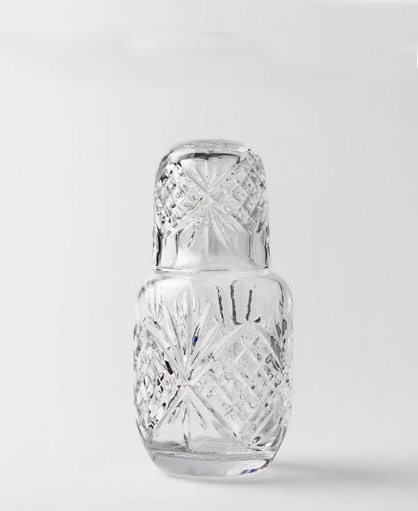 Generic - قارورة زجاج كريستال أنيقة بتصميم راقٍ مع كوب عملي مرفق، مثالية لتقديم المياه والعصائر على المائدة أو وضعها على الكومود لتضيف لمسة فاخرة لمنزلك. (شفاف 1 قطعه)