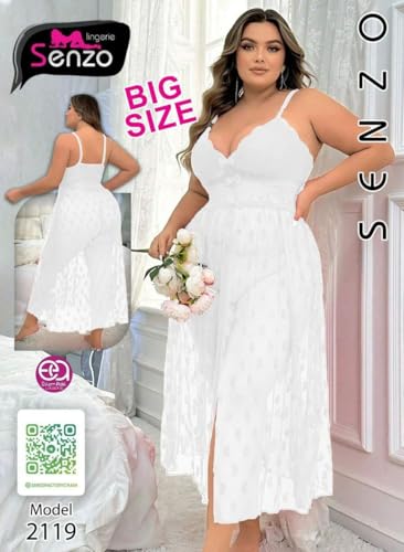 Generic - فستان نوم أبيض طويل بتصميم أنثوي أنيق - مقاس واحد