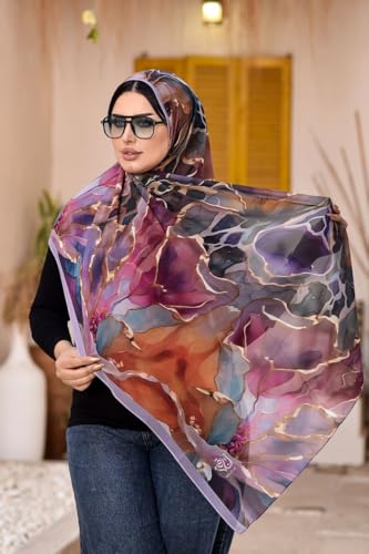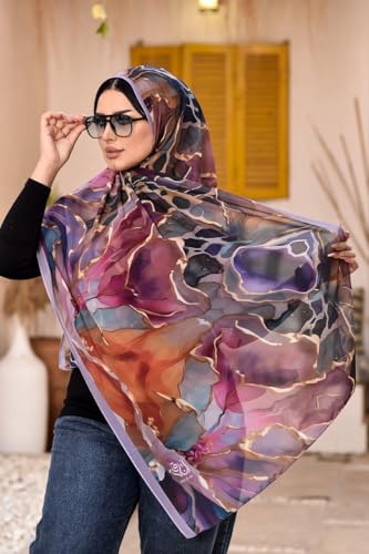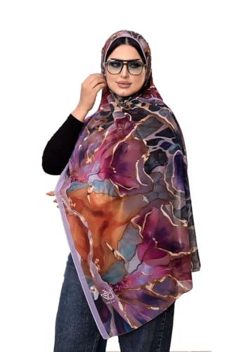 Anaqah Scarf - وشاح حجاب شيفون انيق بطبعة زهور بنمط تجريدي متعدد الالوان للنساء