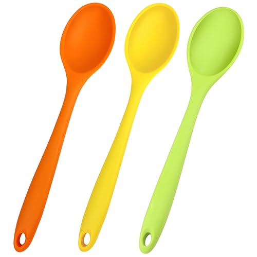 Generic - ادوات مطبخ انيقة - ملاعق طبخ انيقة من السيليكون للخلط المريح، تتميز بتصميم مشقوق وفتحات تعليق مريحة لسهولة التخزين (3 قطع من الالوان المعروضة)