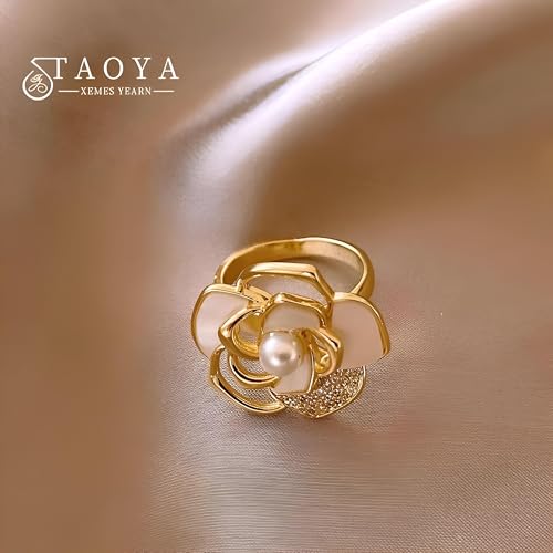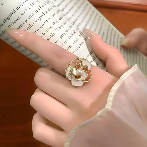 Generic - خاتم لؤلؤ انيق - زخرفة زهرة جميلة مزينة بكريستالات متلألئة، مصنوعة لرفع أسلوبك مع حرفية المجوهرات الخالدة والمواد الفاخرة