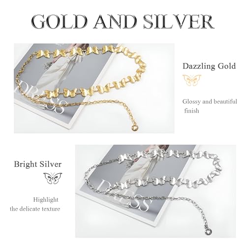Generic - حزام خصر أنيق بتصميم سلسلة معدنية على شكل فراشة بتصميم جميل، حزام قابل للتعديل يضيف لمسة من الرقي إلى ملابسك في المناسبات الخاصة أو الاستخدام اليومي