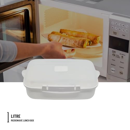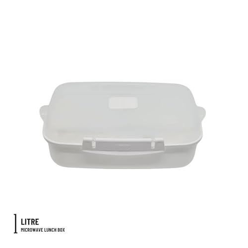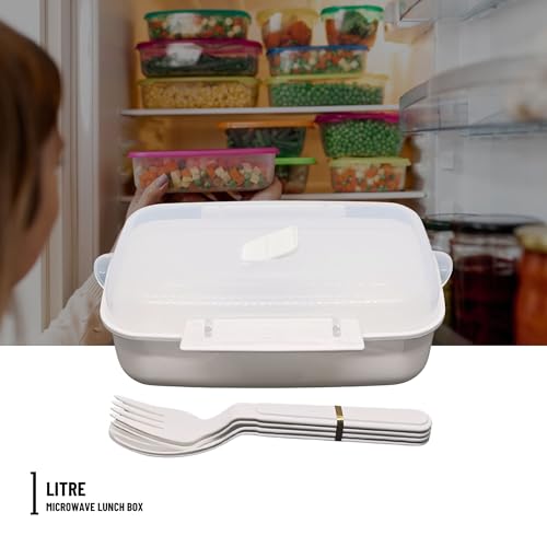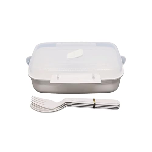 Elite - لانش بوكس مناسب للوضع في الميكروويف مع معلقتين وشوكتين من ايليت، (لون أبيض)