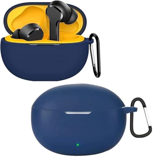 ELMO3EZZ - جراب سماعات ريدمي بودز 4 برو من المعز مصنوعة السيليكون والبولي يوريثين المقاوم للحرارة لون أزرق بشريحتين