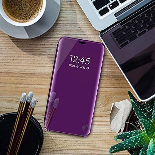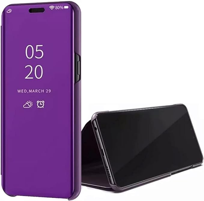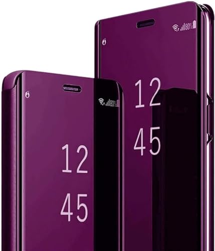 ELMO3EZZ - جراب حماية رجالي وحريمي قابل للطي من المعز متوافق مع موبايل سامسونج جالاكسي A54 شبكة الجيل 5G بتصميم مراية حامل نافذة شفاف قلاب لموبايل A54 الخامس 5G أرجواني شريحتين
